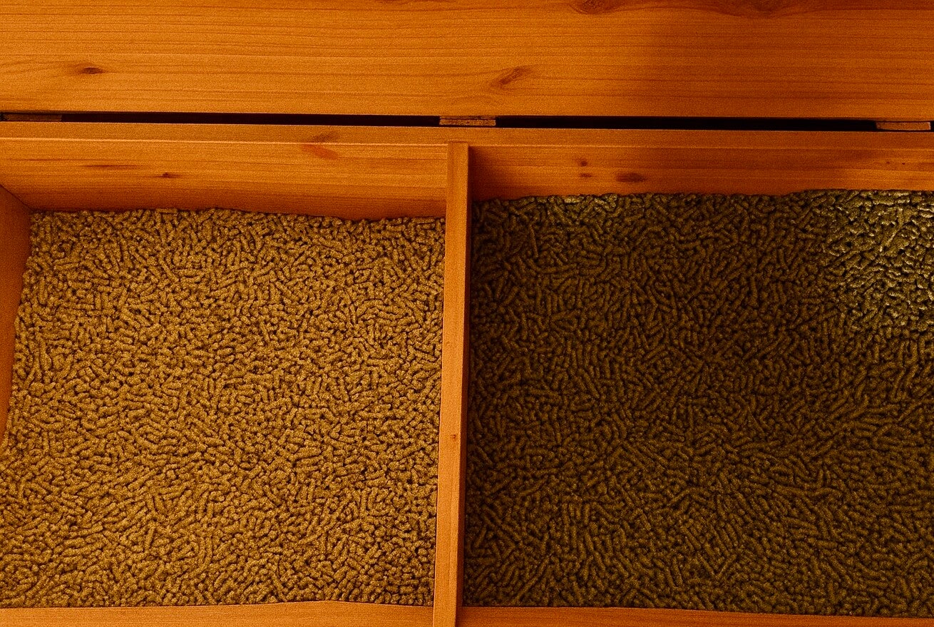 Fabriqué à la main dans notre atelier, il allie robustesse, grande capacité de stockage et finitions soignées. Conçu pour contenir environ 120 L de grains, il protège parfaitement l’aliment de l’humidité, des nuisibles et de la poussière.